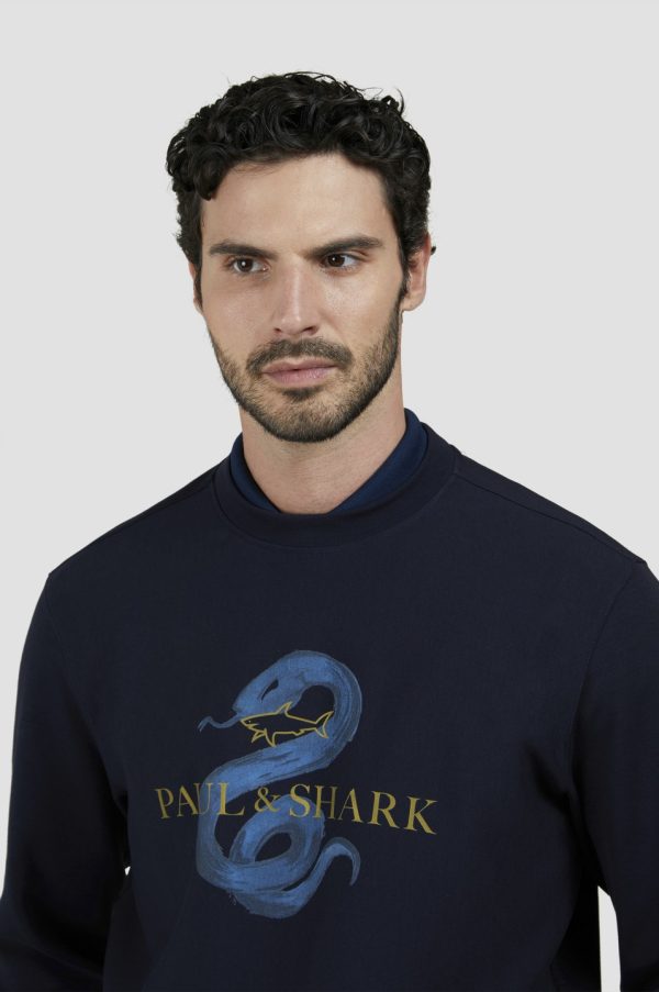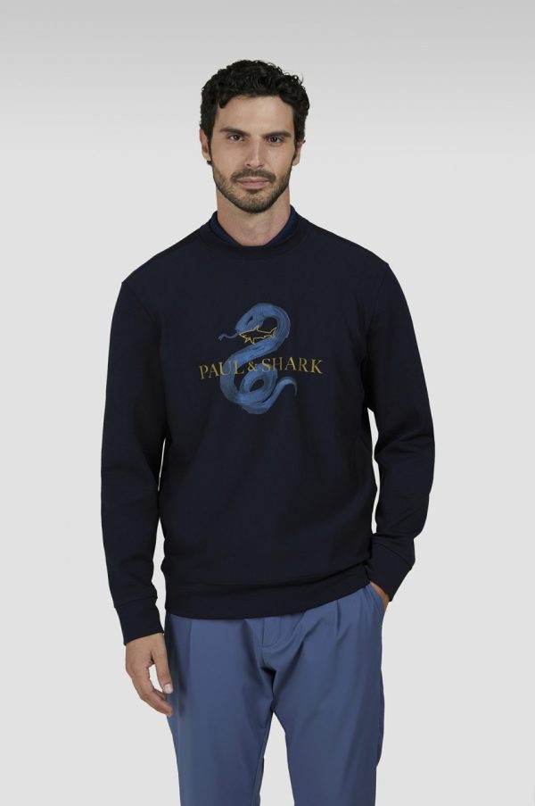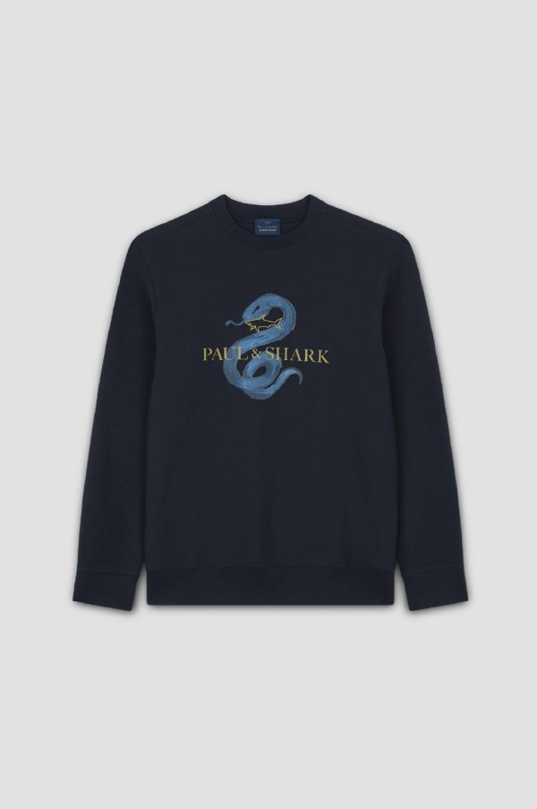 Active Fleece Cotton Sweatshirt With Year Of The Snake Print Blue | Men Paul & Shark Sweatshirts And Track Suits
