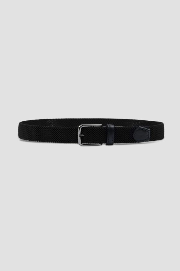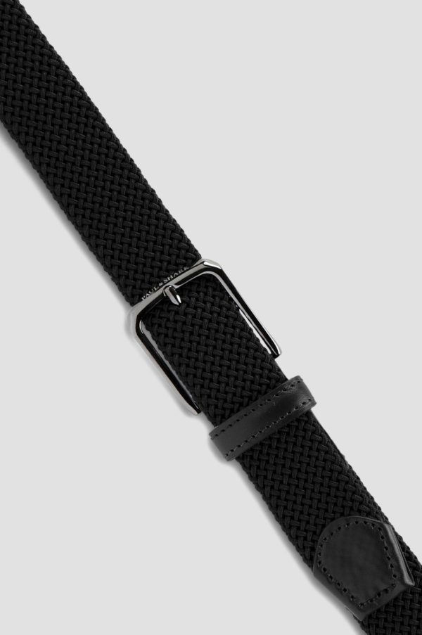 Braided Elastic Belt With Leather Trims Black | Men Paul & Shark Belts