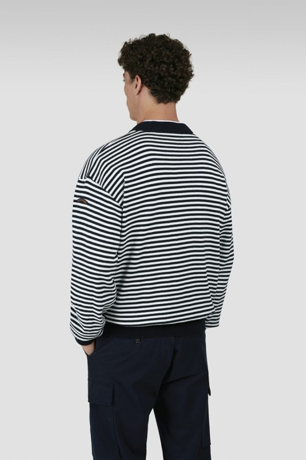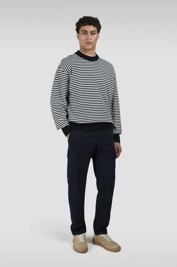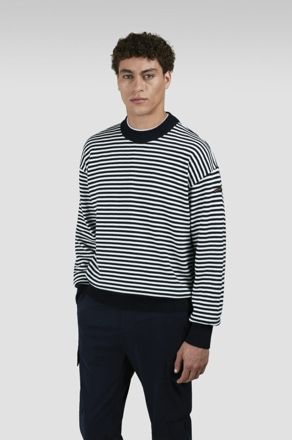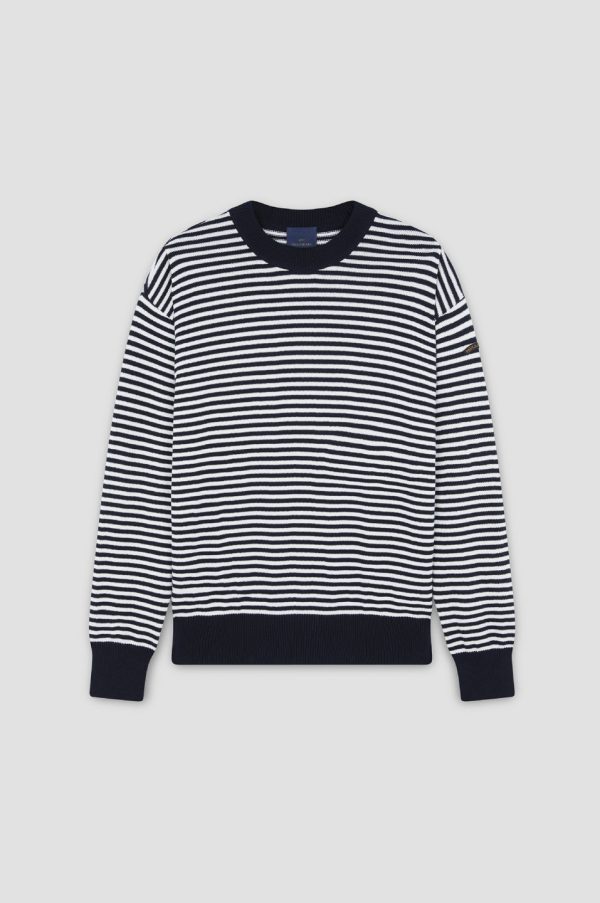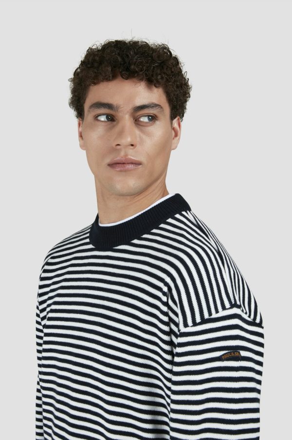 Cotton Crewneck Sweater With Striped Pattern Bright White Dress Blues | Men Paul & Shark Knitwear
