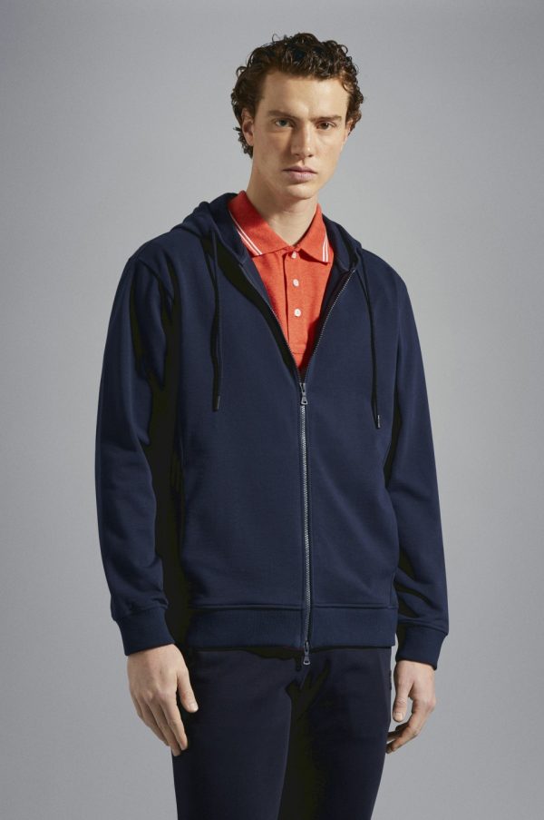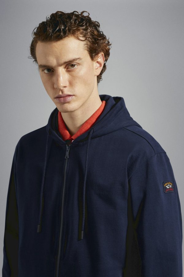 Cotton Full Zip Sweatshirt With Iconic Badge Blue | Men Paul & Shark Sweatshirts And Track Suits