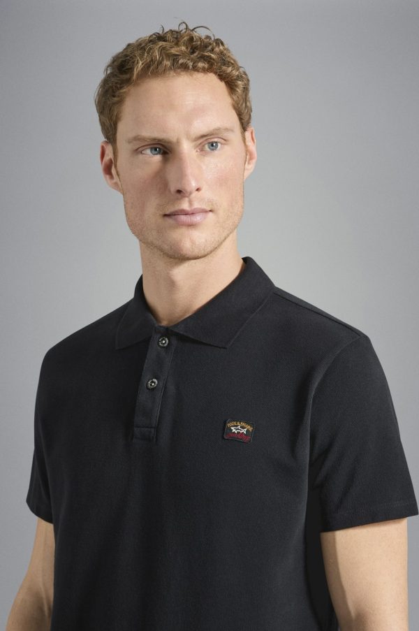 Cotton Piqué Polo Shirt With Iconic Badge Black | Men Paul & Shark Polos And T-Shirts