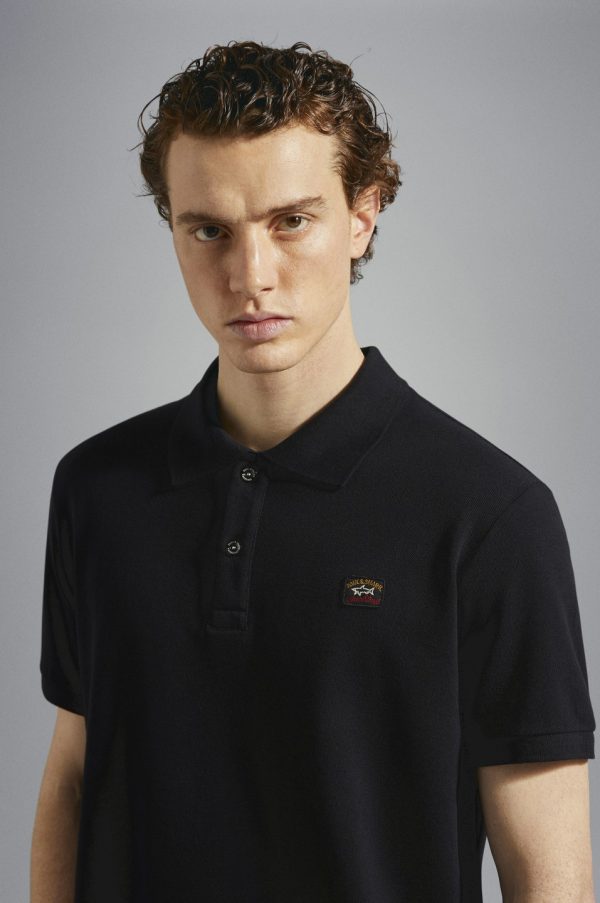Cotton Piqué Polo With Iconic Badge Black | Men Paul & Shark Polos And T-Shirts