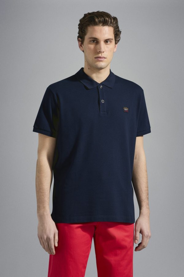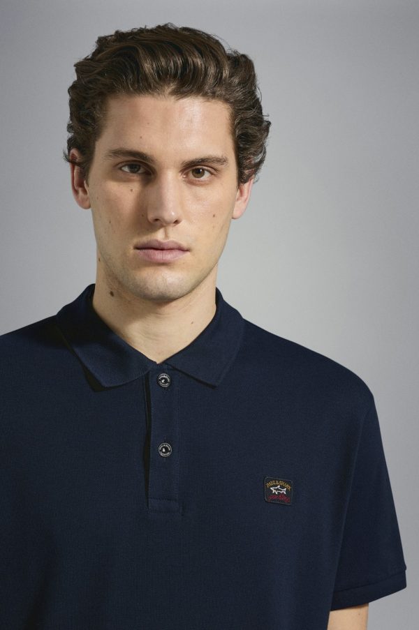 Cotton Piqué Polo With Iconic Badge Blue | Men Paul & Shark Polos And T-Shirts