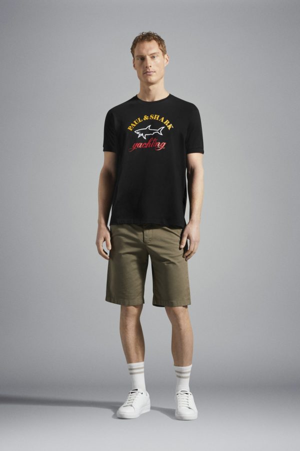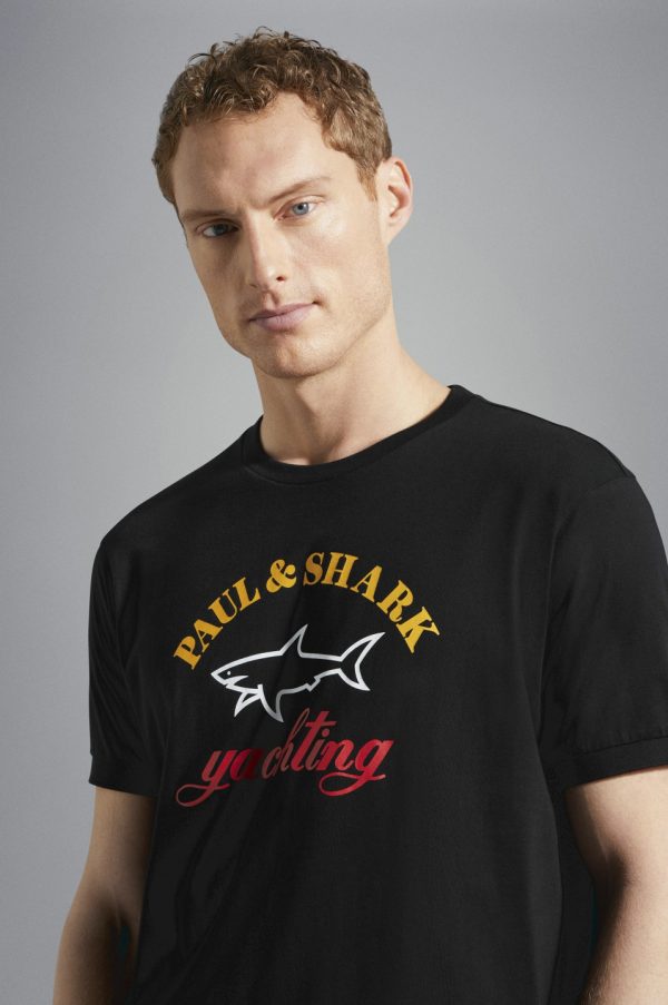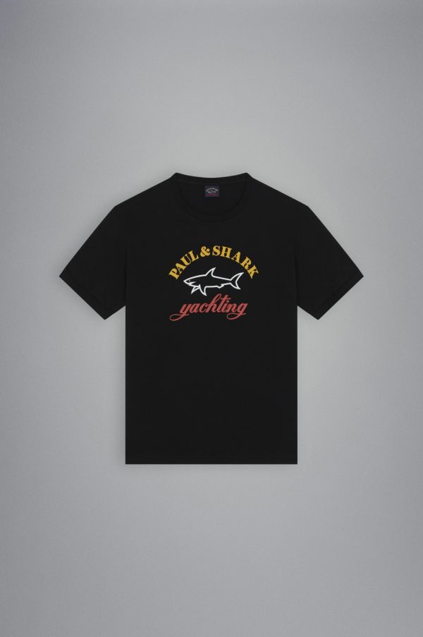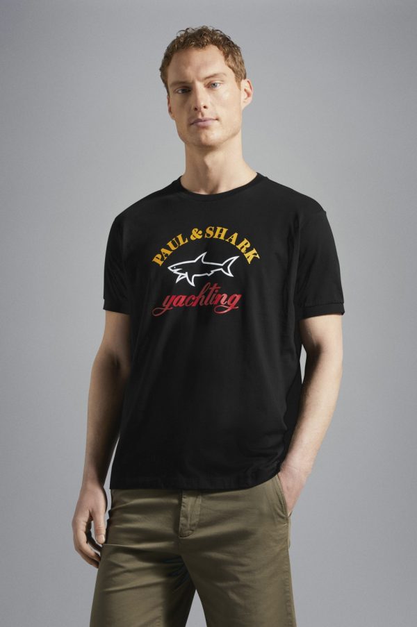 Cotton T-Shirt With Printed Logo Black | Men Paul & Shark Polos And T-Shirts