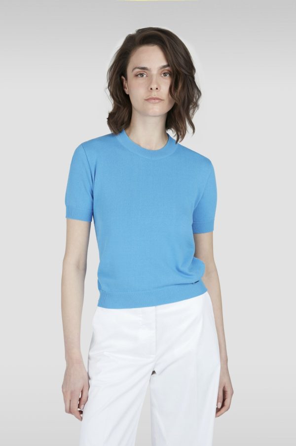 Crewneck Sweater In Fresh Cotton Blue Ocean | Women Paul & Shark Knitwear