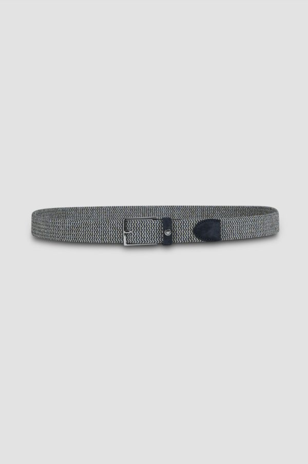 Elastic Belt With Micro-weave And Leather Trims Air Force Blue Beige | Men Paul & Shark Belts