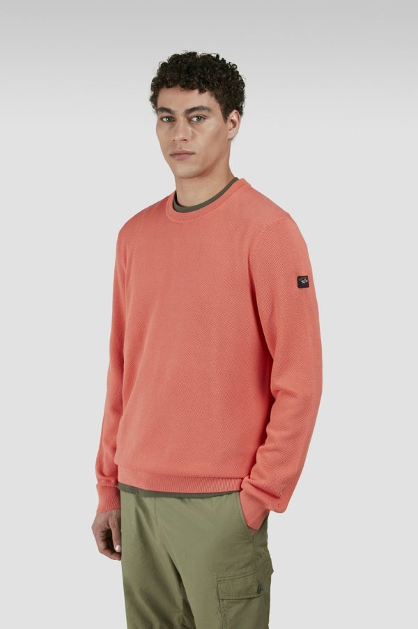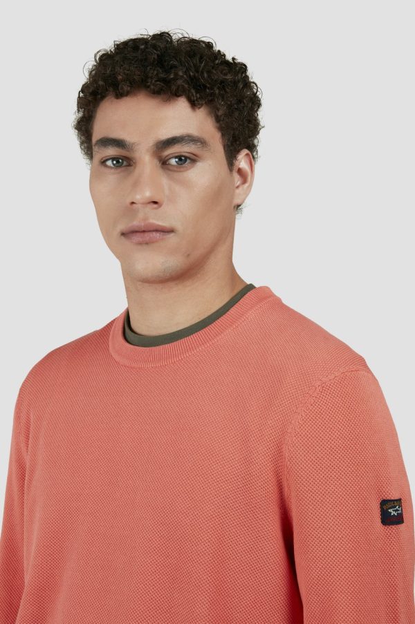 Garment-dyed Cotton Crewneck Sweater Lobster | Men Paul & Shark Knitwear