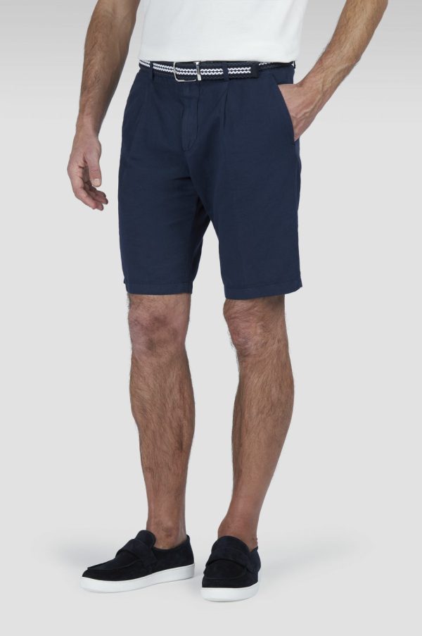 Linen And Cotton Bermuda With Pleats Blue | Men Paul & Shark Bermuda Shorts