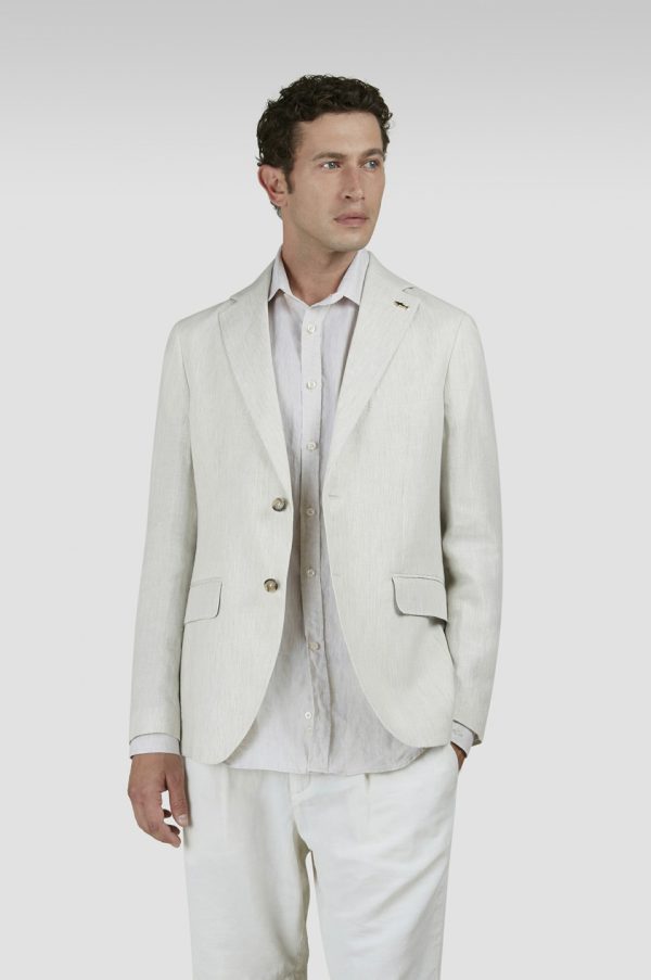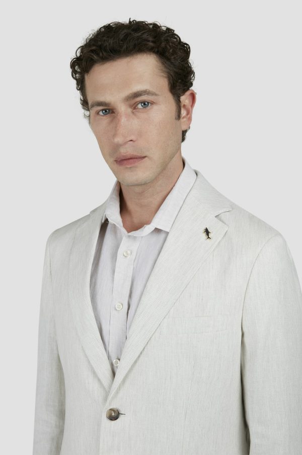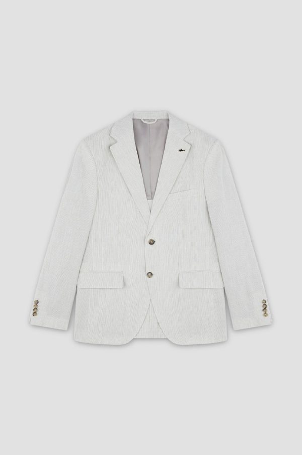 Linen Blazer With Striped Pattern Stripes White Beige | Men Paul & Shark Outerwear
