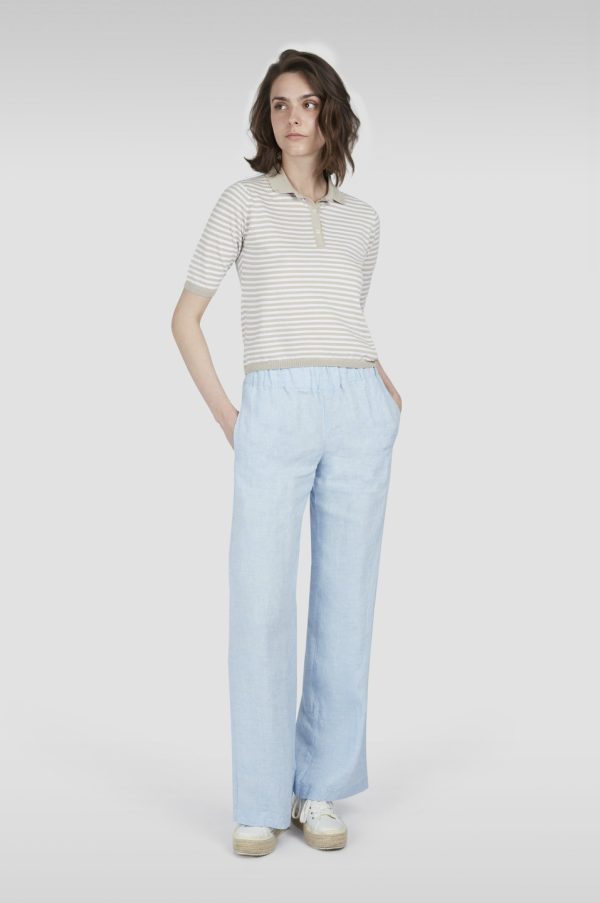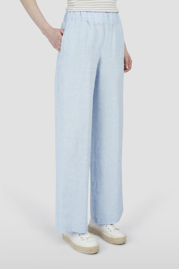 Linen Wide-Leg Trousers Kentucky Blue | Women Paul & Shark Trousers And Bermuda Shorts
