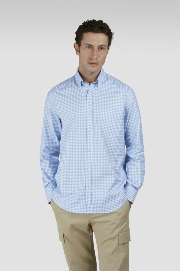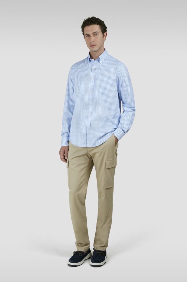 MEN’S Casual Cotton Shirt With Long Sleeves J-Fit | Paul & Shark Square White Light Blue | Men Paul & Shark Shirts