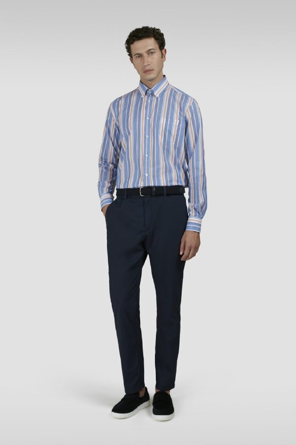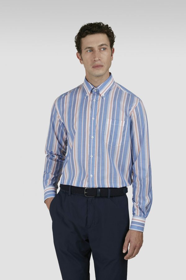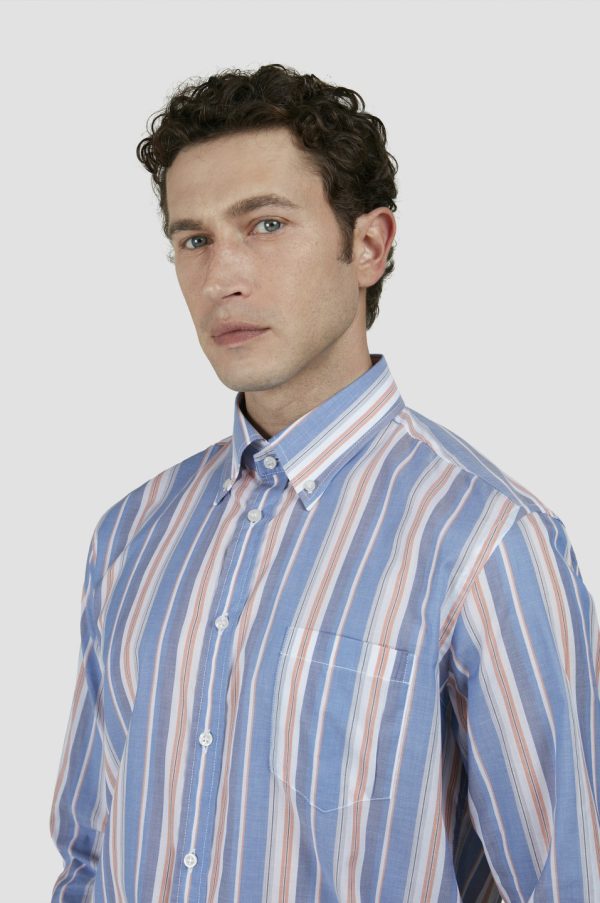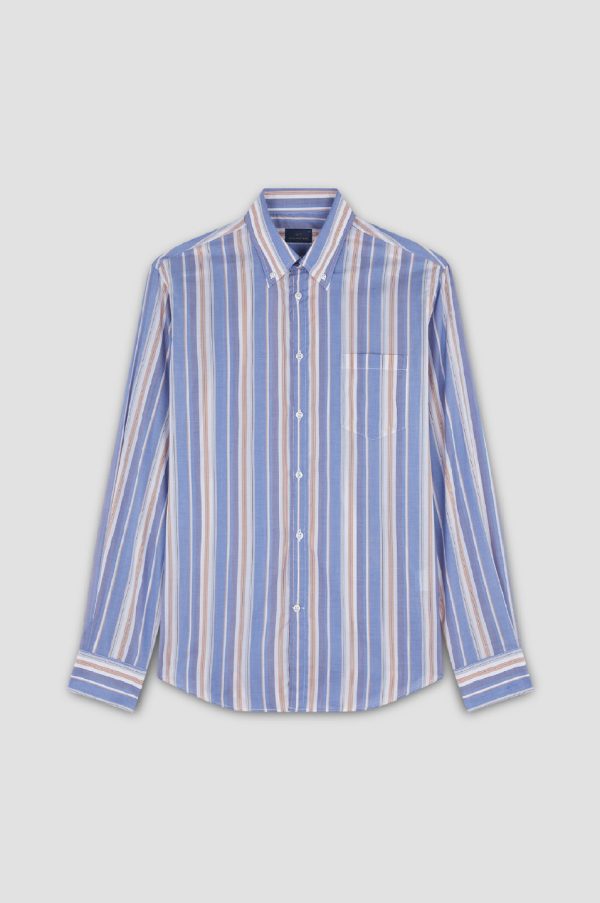 MEN’S Cotton Muslin Shirt With Long Sleeves J-Fit | Paul & Shark Rows White Blue Orange Grey | Men Paul & Shark Shirts