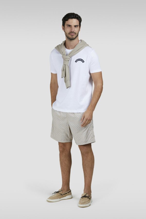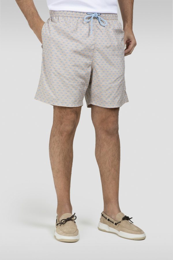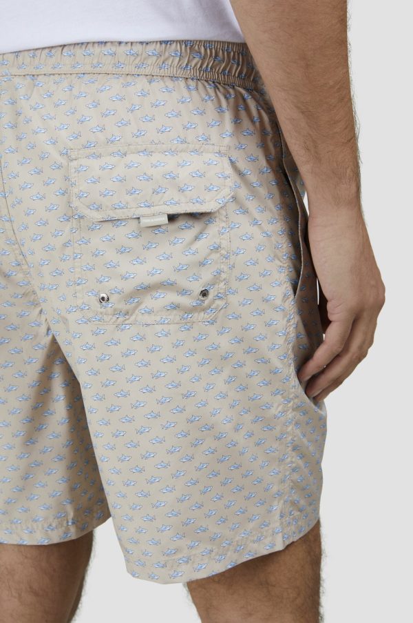 MEN’S Swim Trunks In Ultralight Fabric Regular Fit | Paul & Shark Beige With Blue Shark | Men Paul & Shark Beachwear