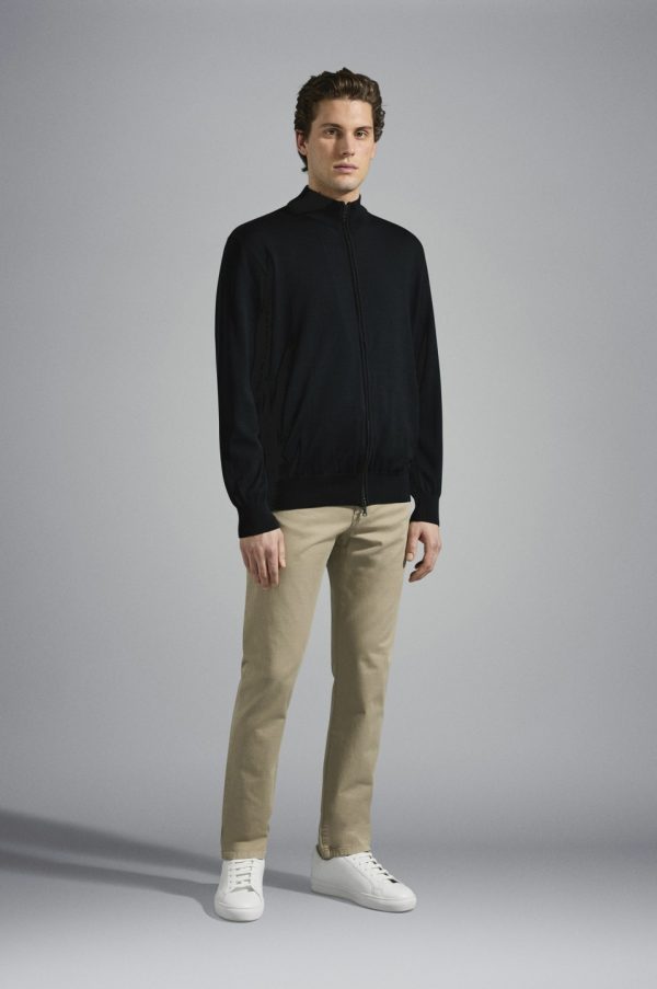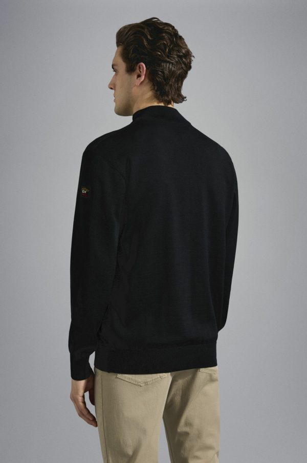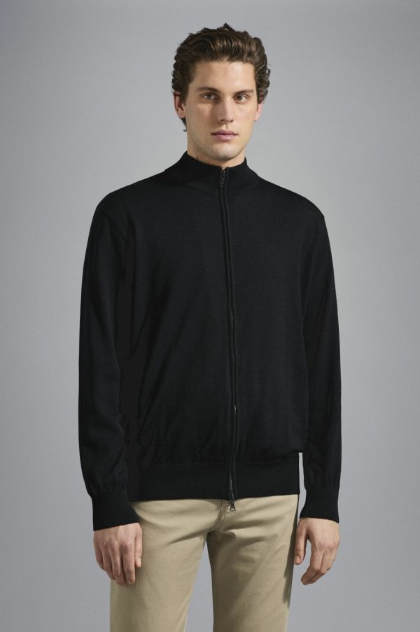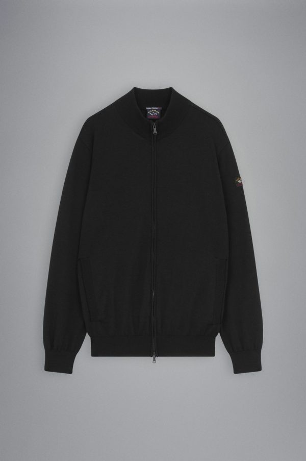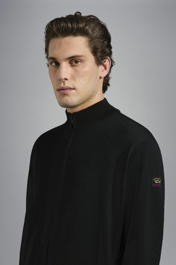 Merino Wool Full Zip Sweater With Iconic Badge Black | Men Paul & Shark Knitwear