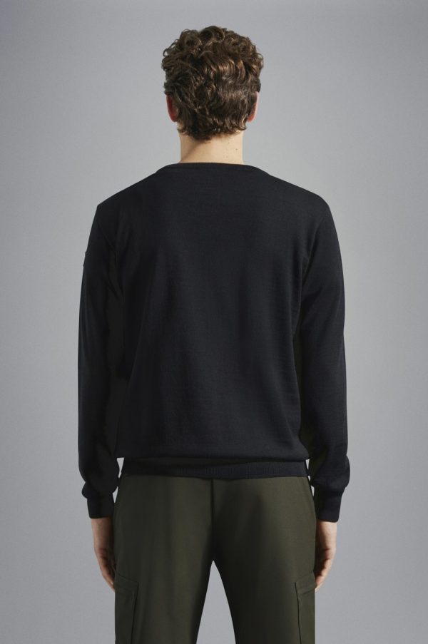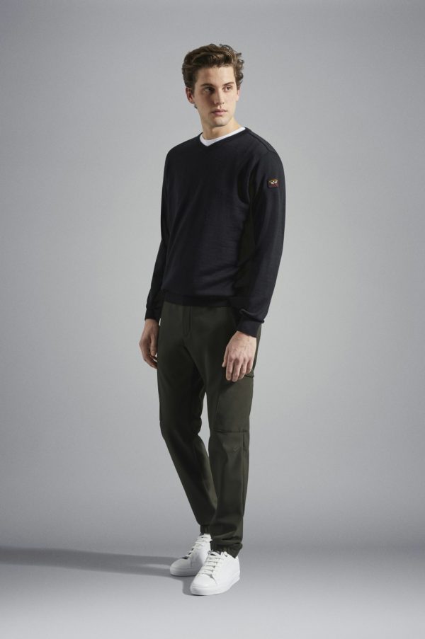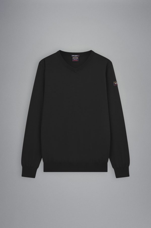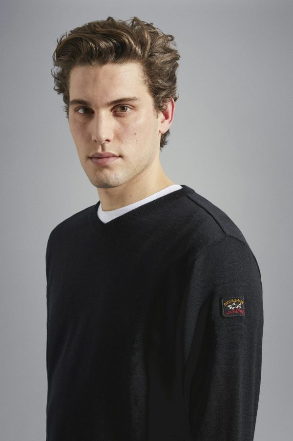 Merino Wool V-neck With Iconic Badge Black | Men Paul & Shark Knitwear