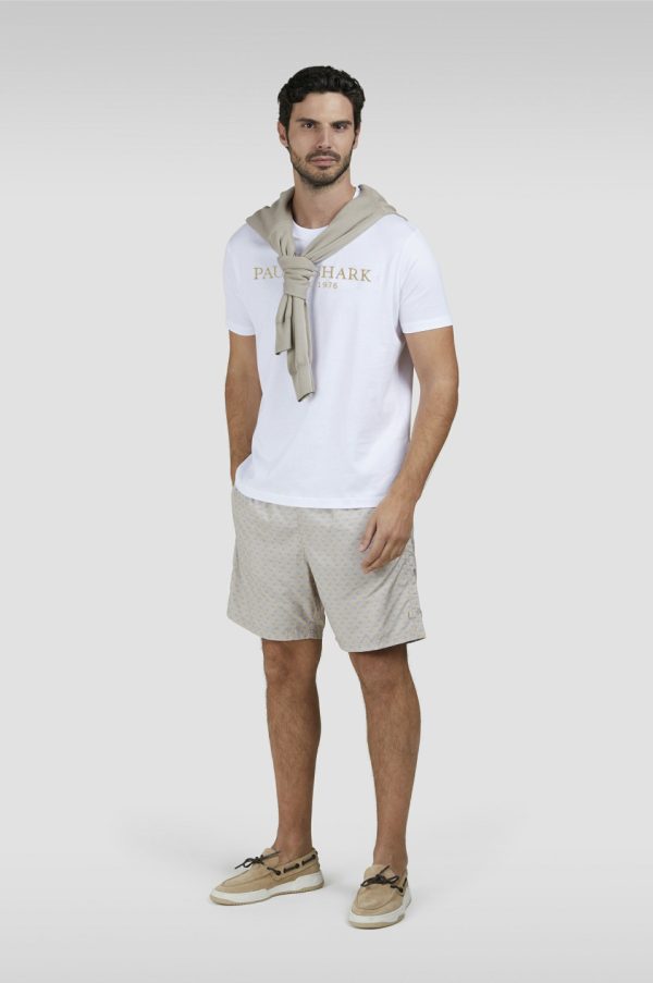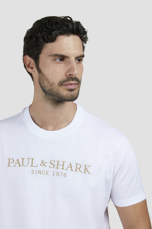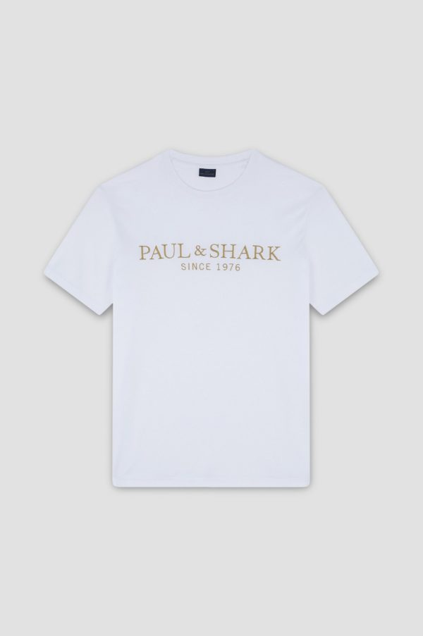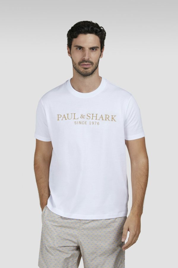 Perlé Cotton T-shirt With Logo Print White | Men Paul & Shark T-Shirts