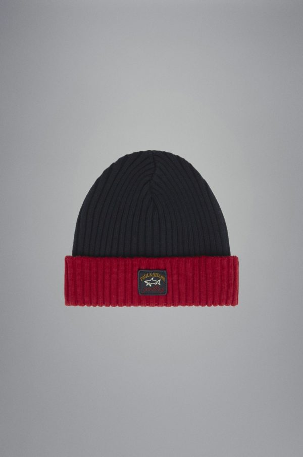 Ribbed Wool Beanie With Iconic Badge Bordeaux | Men Paul & Shark Accessories