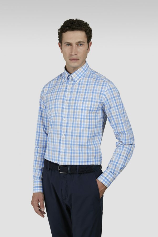 Soft Touch Cotton Poplin Shirt With Check Pattern Tartan White Light Blue Beige | Men Paul & Shark Shirts