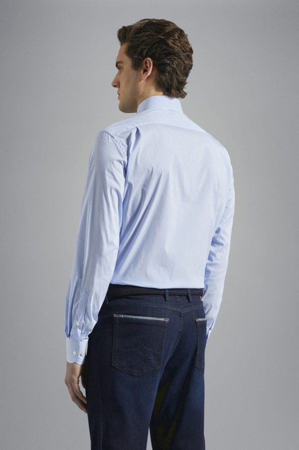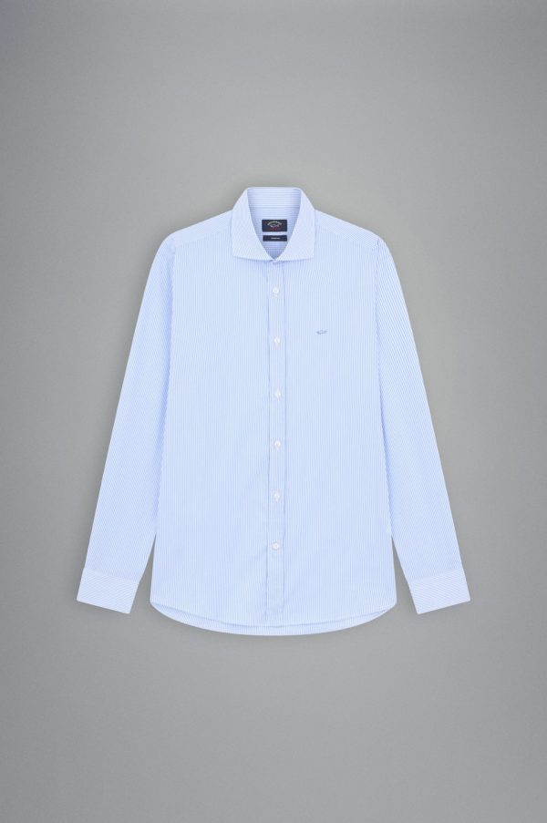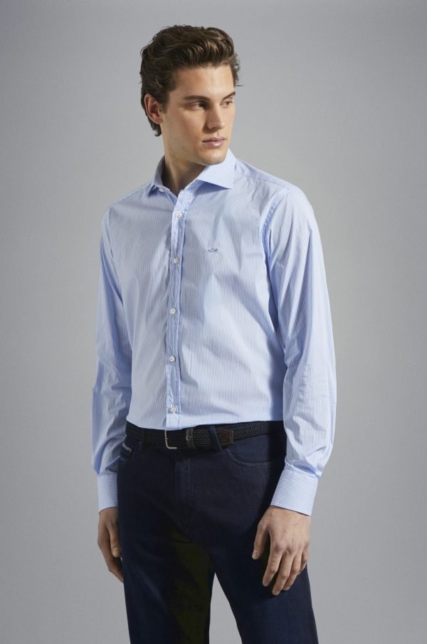 Stretch Cotton Shirt Rows White Light Blu | Men Paul & Shark Shirts