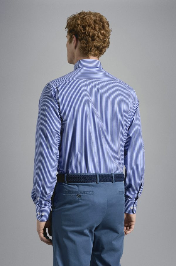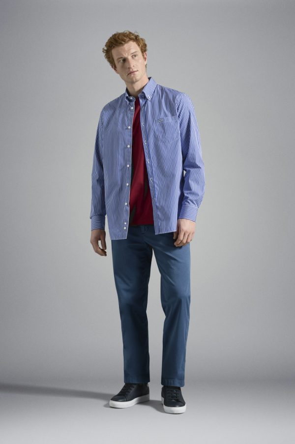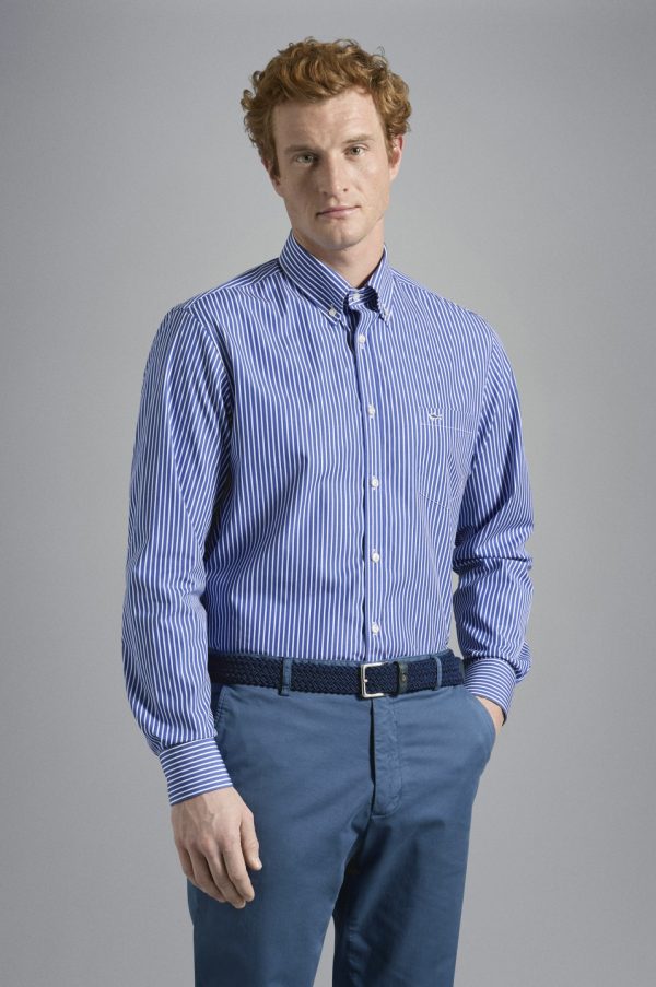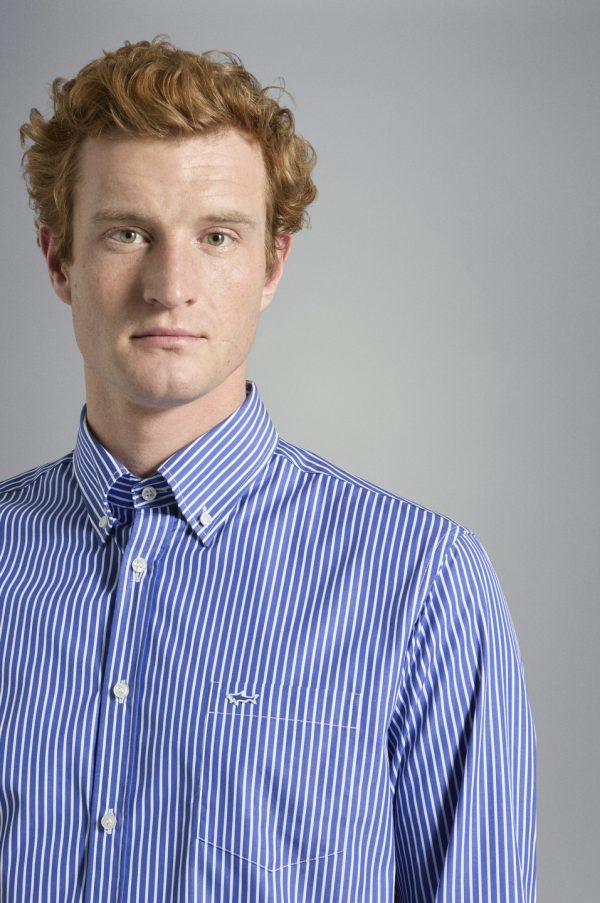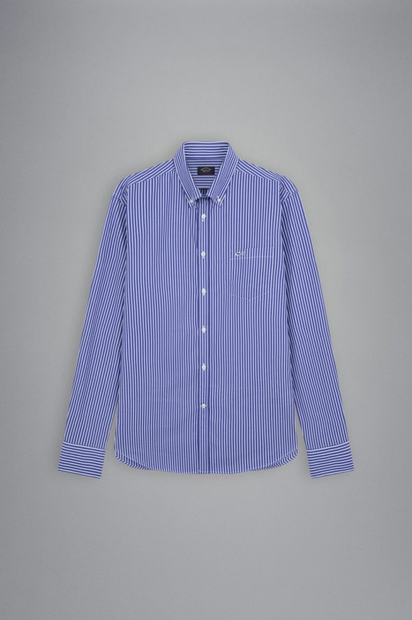 Striped Cotton Shirt Rows Cobalt White | Men Paul & Shark Shirts