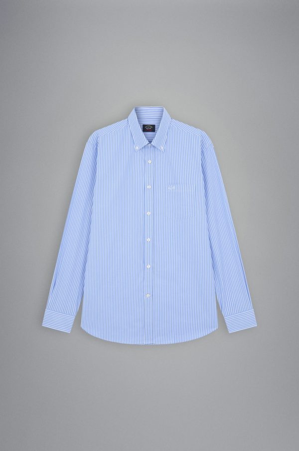 Striped Cotton Shirt Rows Light Blue White | Men Paul & Shark Shirts