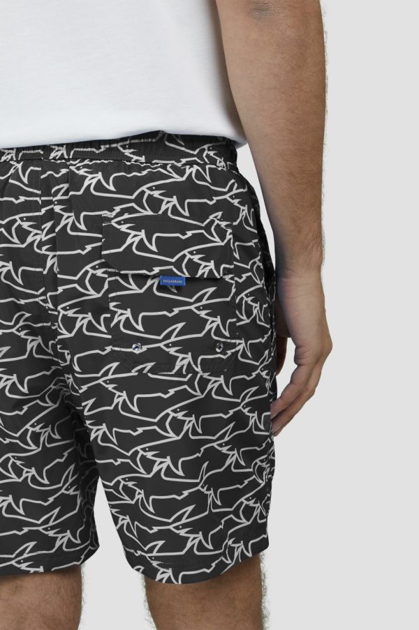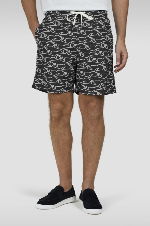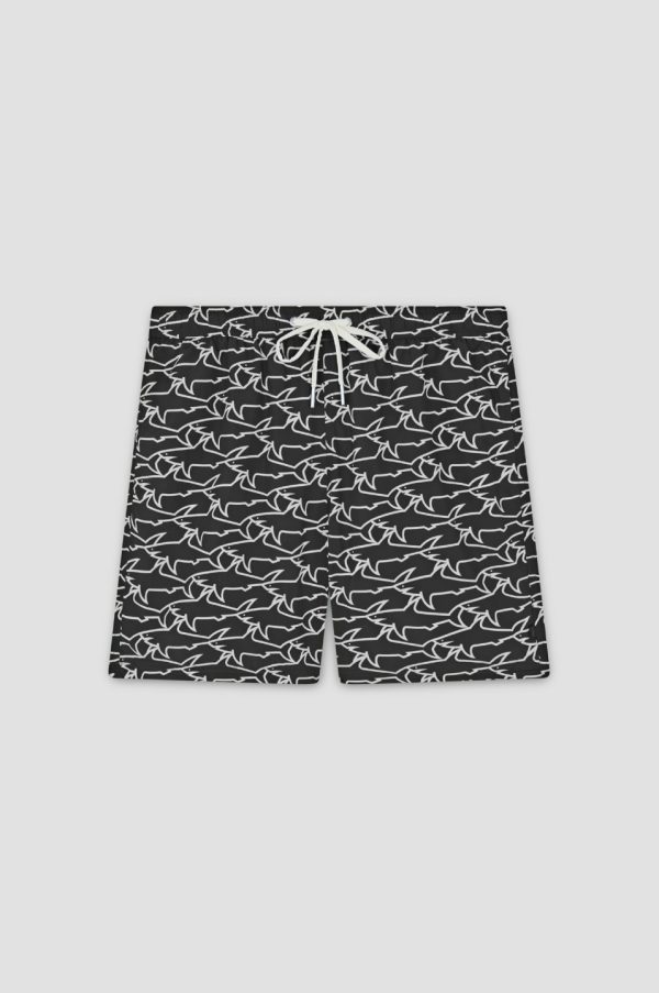 Swim Shorts With All-Over Shark Print Black White Sharks | Men Paul & Shark Beachwear