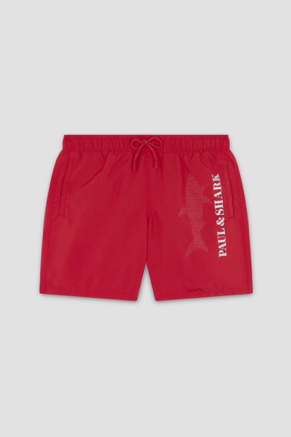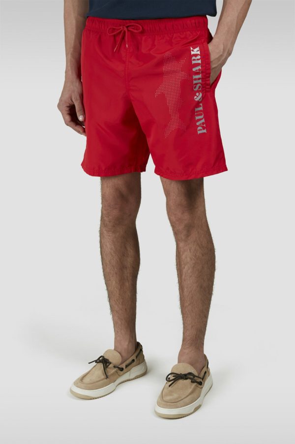 Swim Shorts With Reflective Logo Print Red | Men Paul & Shark Beachwear