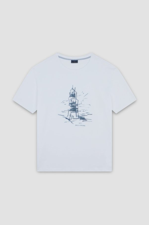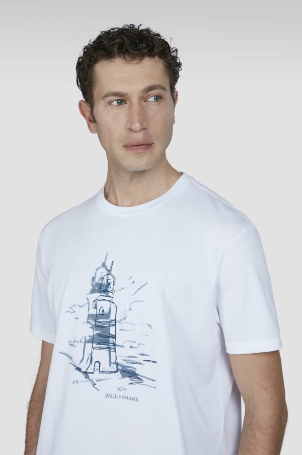 T-shirt In Cotton Jersey With Lighthouse Print White | Men Paul & Shark T-Shirts