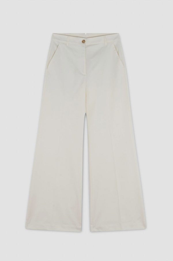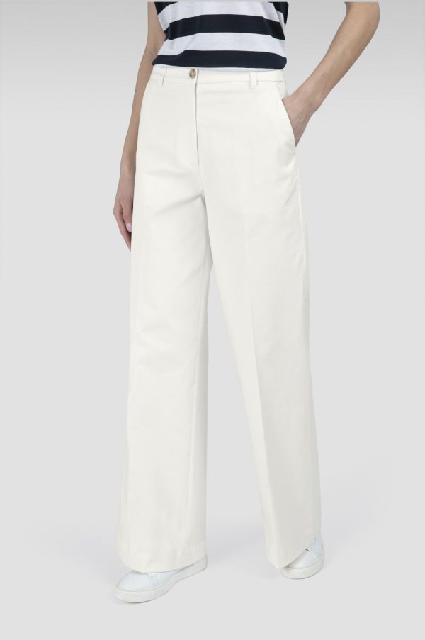 Wide-leg Trousers In Stretch Cotton Twill Butter | Women Paul & Shark Trousers And Bermuda Shorts