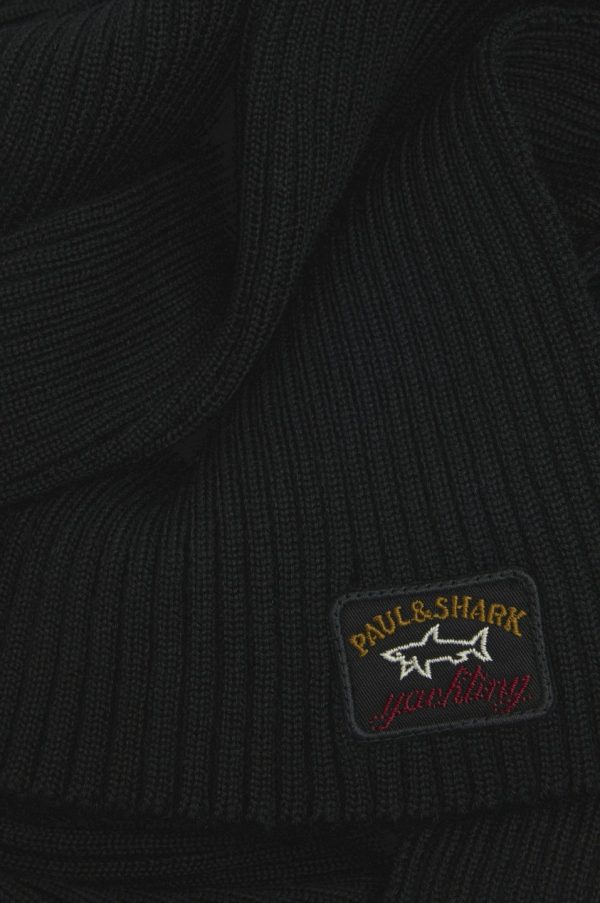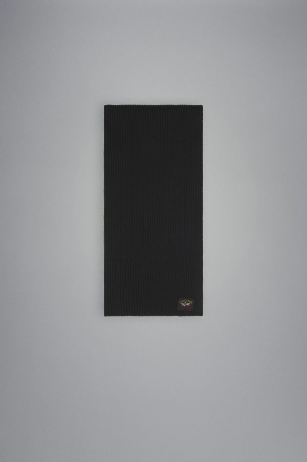 Wool Scarf With Iconic Badge Black | Men Paul & Shark Accessories
